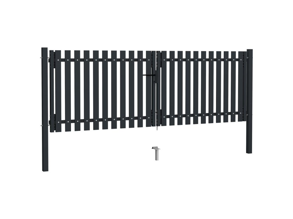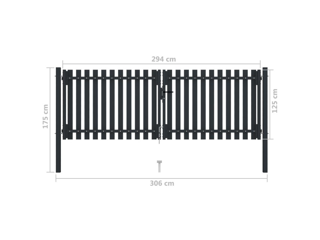 Dvoukřídlá plotová branka ocelová 306 x 125 cm antracitová