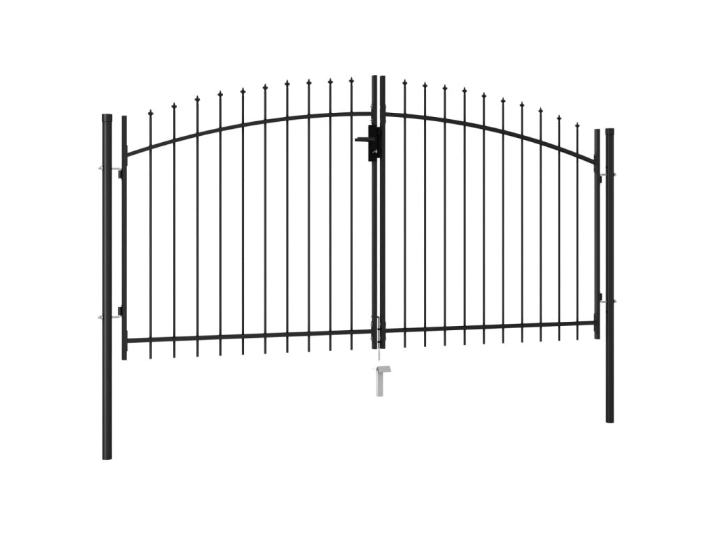 Dvoukřídlá zahradní brána s hroty ocelová 3 x 1,5 m černá