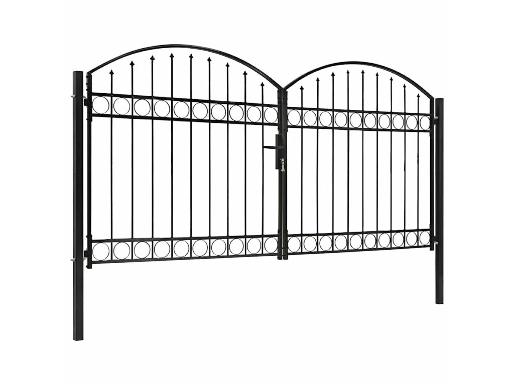 Dvoukřídlá zahradní brána s obloukem ocelová 300 x 150 cm černá