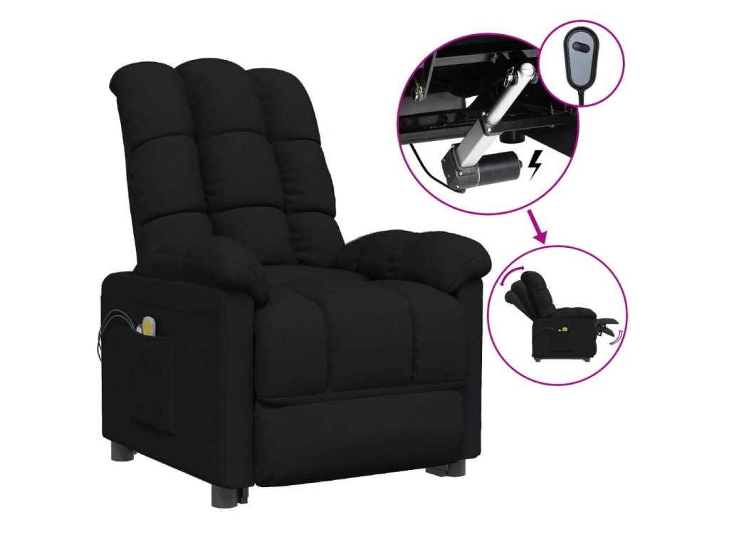 Elektrické masážní křeslo černé textil