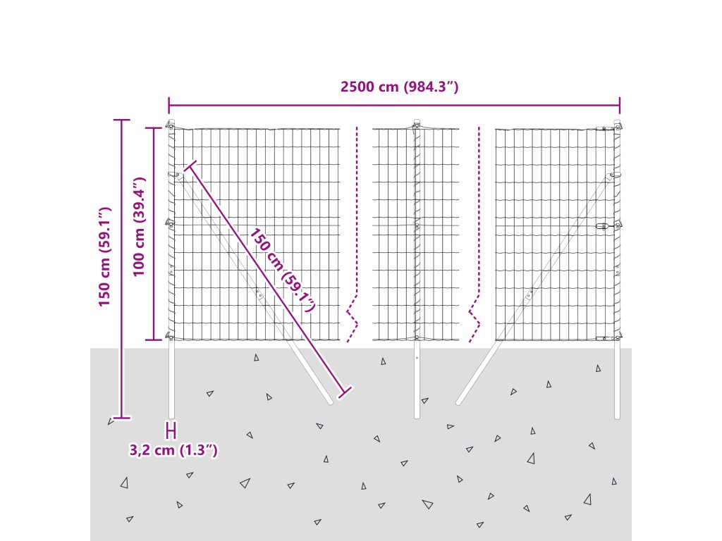 - Celkové rozměry: 2500 x 3.2 x 100 cm (D x Š x V)