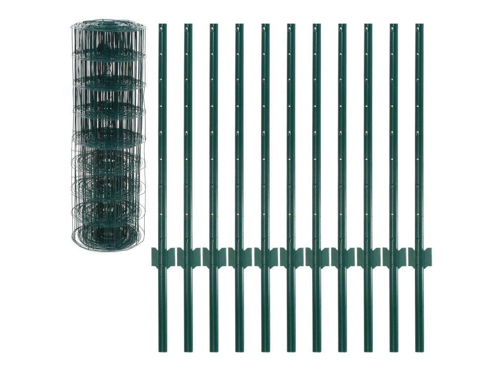 Je vyroben z oceli potažené PVC, má pevnou konstrukci a je odolný vůči povětrnostním vlivům, korozi a UV záření. Tato vysoce kvalitní sada plotů je velmi odolná. Balení obsahuje plot a 11 sloupků.