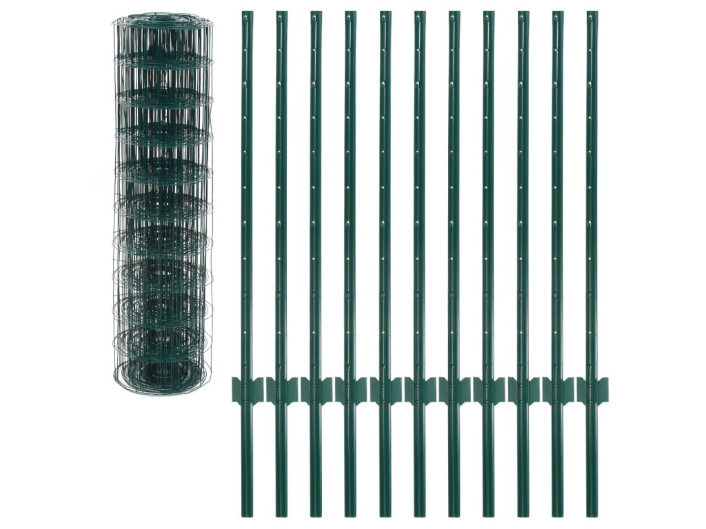 Je vyroben z oceli potažené PVC, má pevnou konstrukci a je odolný vůči povětrnostním vlivům, korozi a UV záření. Tato vysoce kvalitní sada plotů je velmi odolná. Balení obsahuje plot a 11 sloupků.
