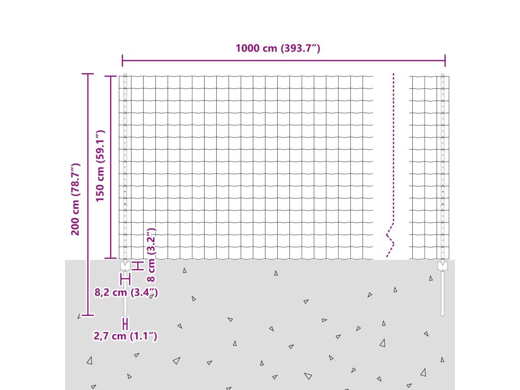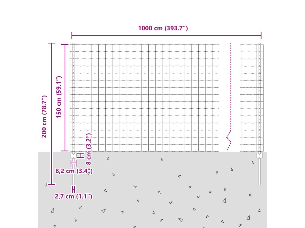 - Celkové rozměry: 1000 x 2,7 x 150 cm (D x Š x V)