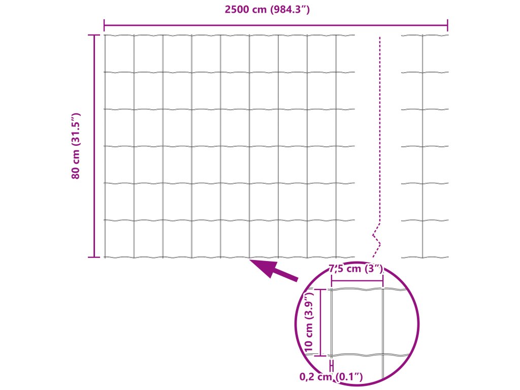 - Celkové rozměry: 2500 x 2,7 x 80 cm (D x Š x V)