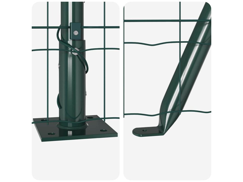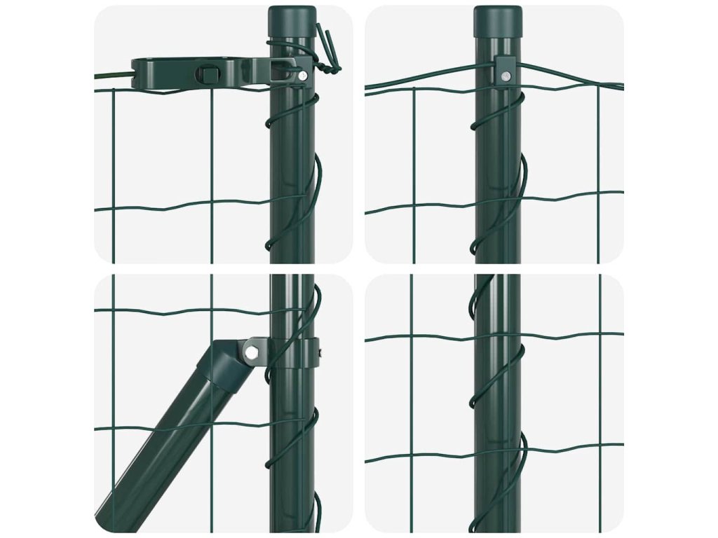 Materiál: Tyhle panely jsou vyrobené z kvalitní oceli a tvoří silnou zaščitu proti povětrnostním vlivům. Jsou dost odolné, aby vydržely věčnost v jakémkoli venkovním prostředí. Navíc mají UV ochranu, takže si zachovají dobrý vzhled i na sluníčku. Práškové lakování: Díky hezkému práškově lakovanému povrchu, tyhle panely nejsou jen pěkné; jsou taky praktické. Takhle úprava jim dodává ochrannou vrstvu, která je chrání před špatným počasím, brání vzniku rzi a rozkladu. Barvy si udrží a vypadají svěže i během celého roku. Odolnost vůči povětrnostním vlivům: Navržené tak, aby zvládly živly, tenhle plot se nerozpadne, když prší nebo svítí slunce. Je odolný proti povětrnostním vlivům, což znamená méně práce pro tebe, takže si užiješ svůj venkovní prostor bez stálé opravy. Snadná montáž: Tenhle plot je super jednoduchý na sestavení a nepotřebuje moc nástrojů. Jen se řiď pokyny, aby ses to nainstaloval rychle, což ti dá pevný okraj pro zahrady, terasy nebo dvorky - ideální pro všechny druhy venkovních akcí. Bezpečné uchycení k zemi: Dosahující k zemi, plot nemá žádné mezery, takže všechno zůstává na svém místě. To je skvělé pro majitele zvířat a rodiče, protože to dává klid, že vše je v bezpečí uvnitř.- Barva: Zelená