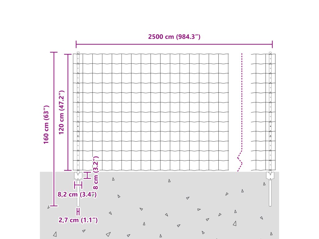 - Celkové rozměry: 2500 x 2,7 x 120 cm (D x Š x V)