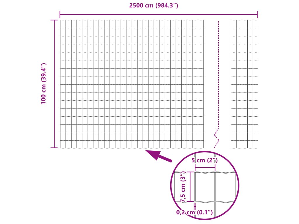 - Celkové rozměry: 2500 x 2,7 x 100 cm (D x Š x V)