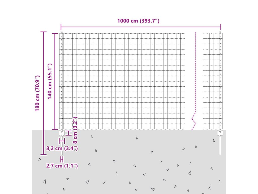 Plot s sloupkem Zelená 1,4 x 10 m Ocel a PVC