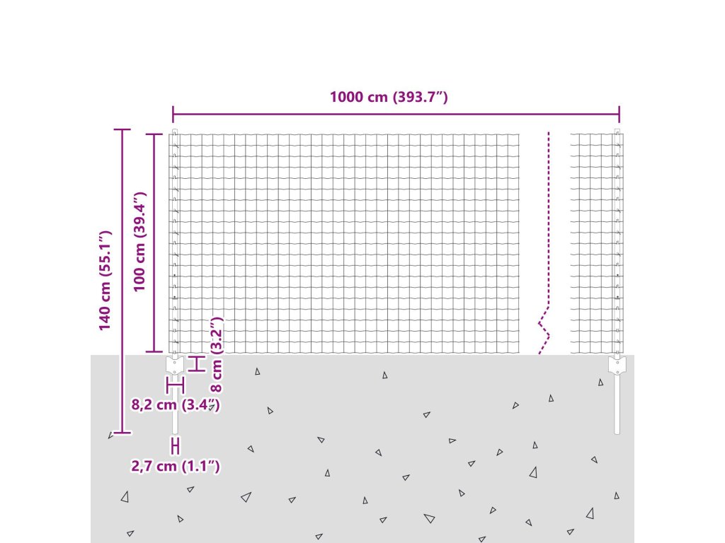 - Celkové rozměry: 1000 x 2,7 x 100 cm (D x Š x V)