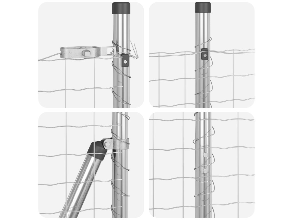 Materiál: Tyhle panely jsou vyrobené z kvalitní oceli a tvoří silnou zaščitu proti povětrnostním vlivům. Jsou dost odolné, aby vydržely věčnost v jakémkoli venkovním prostředí. Navíc mají UV ochranu, takže si zachovají dobrý vzhled i na sluníčku. Práškové lakování: Díky hezkému práškově lakovanému povrchu, tyhle panely nejsou jen pěkné; jsou taky praktické. Takhle úprava jim dodává ochrannou vrstvu, která je chrání před špatným počasím, brání vzniku rzi a rozkladu. Barvy si udrží a vypadají svěže i během celého roku. Odolnost vůči povětrnostním vlivům: Navržené tak, aby zvládly živly, tenhle plot se nerozpadne, když prší nebo svítí slunce. Je odolný proti povětrnostním vlivům, což znamená méně práce pro tebe, takže si užiješ svůj venkovní prostor bez stálé opravy. Snadná montáž: Tenhle plot je super jednoduchý na sestavení a nepotřebuje moc nástrojů. Jen se řiď pokyny, aby ses to nainstaloval rychle, což ti dá pevný okraj pro zahrady, terasy nebo dvorky - ideální pro všechny druhy venkovních akcí. Bezpečné uchycení k zemi: Dosahující k zemi, plot nemá žádné mezery, takže všechno zůstává na svém místě. To je skvělé pro majitele zvířat a rodiče, protože to dává klid, že vše je v bezpečí uvnitř.- Barva: Stříbrná
