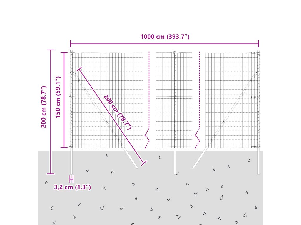 - Celkové rozměry: 1000 x 3.2 x 150 cm (D x Š x V)