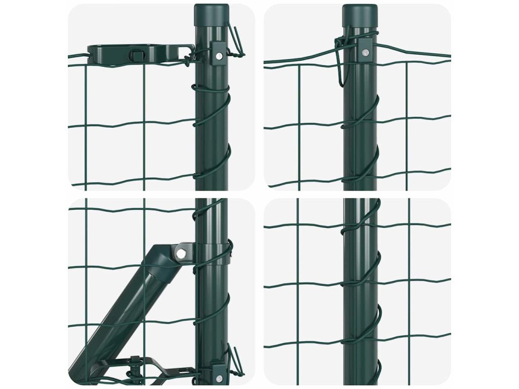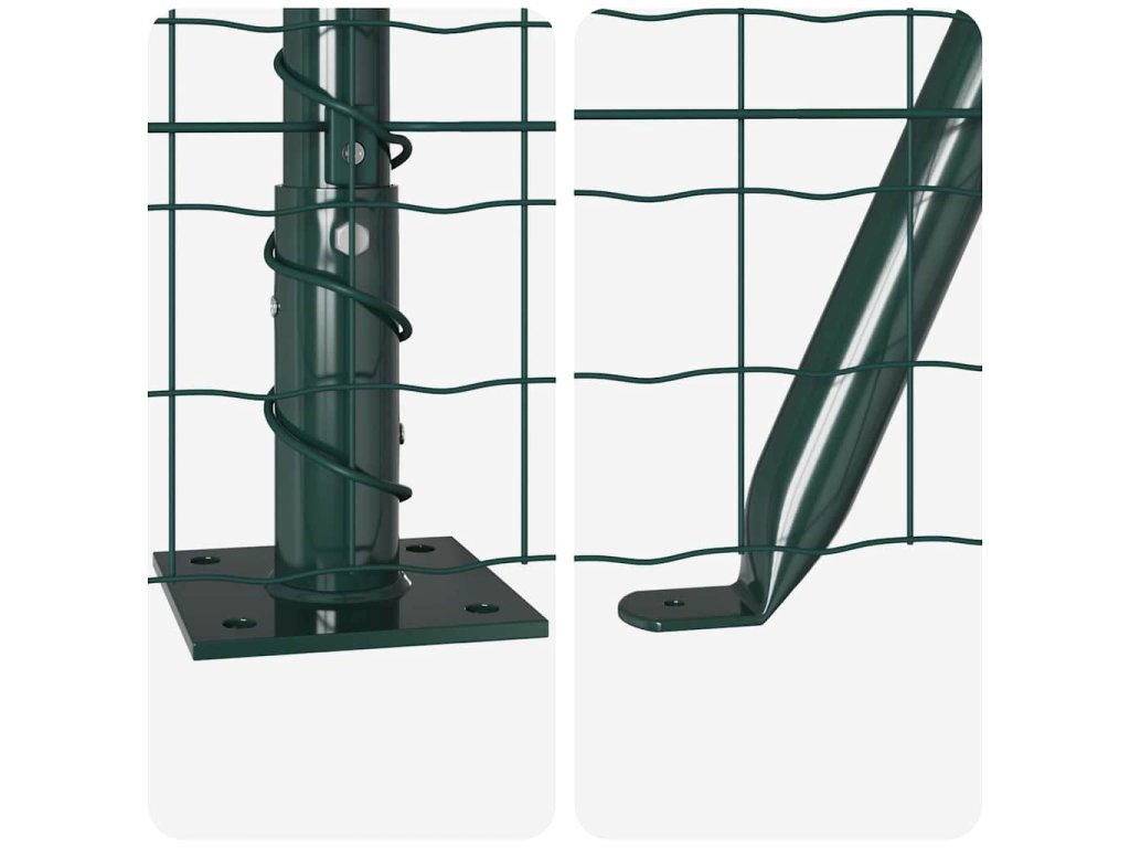 Materiál: Tyhle panely jsou vyrobené z kvalitní oceli a tvoří silnou zaščitu proti povětrnostním vlivům. Jsou dost odolné, aby vydržely věčnost v jakémkoli venkovním prostředí. Navíc mají UV ochranu, takže si zachovají dobrý vzhled i na sluníčku. Práškové lakování: Díky hezkému práškově lakovanému povrchu, tyhle panely nejsou jen pěkné; jsou taky praktické. Takhle úprava jim dodává ochrannou vrstvu, která je chrání před špatným počasím, brání vzniku rzi a rozkladu. Barvy si udrží a vypadají svěže i během celého roku. Odolnost vůči povětrnostním vlivům: Navržené tak, aby zvládly živly, tenhle plot se nerozpadne, když prší nebo svítí slunce. Je odolný proti povětrnostním vlivům, což znamená méně práce pro tebe, takže si užiješ svůj venkovní prostor bez stálé opravy. Snadná montáž: Tenhle plot je super jednoduchý na sestavení a nepotřebuje moc nástrojů. Jen se řiď pokyny, aby ses to nainstaloval rychle, což ti dá pevný okraj pro zahrady, terasy nebo dvorky - ideální pro všechny druhy venkovních akcí. Bezpečné uchycení k zemi: Dosahující k zemi, plot nemá žádné mezery, takže všechno zůstává na svém místě. To je skvělé pro majitele zvířat a rodiče, protože to dává klid, že vše je v bezpečí uvnitř.- Barva: Zelená