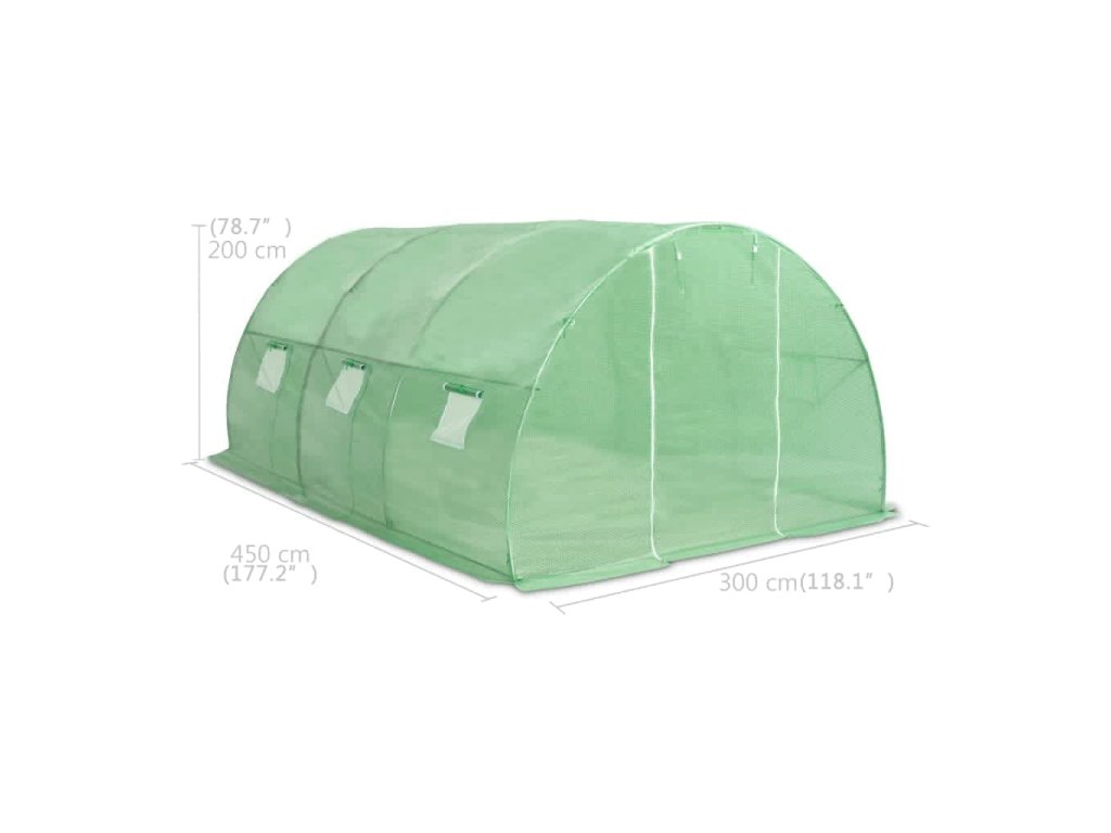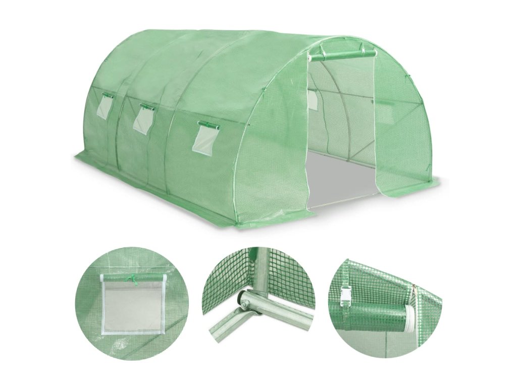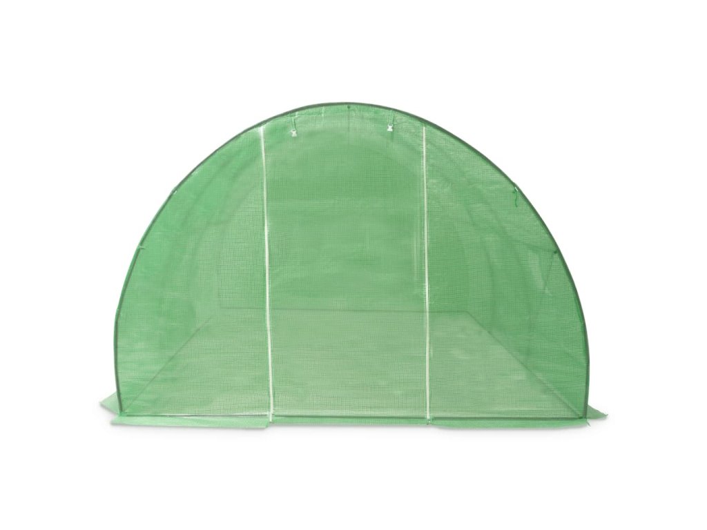 Skleník vaše rostliny ochrání nejen před větrem a deštěm, ale také před ptáky a přímým slunečním svitem. Je vyroben z PE tkaniny s gramáží 140 g/m², která je o 25 % těžší než standardní síťovina vyrobená konkurencí. O to lépe vzdoruje nepřízni počasí. Skleník disponuje rámem z pozinkované oceli, který skvěle vzdoruje korozi, takže je velmi stabilní. Navíc je vybavený šesti odvětrávacími okénky o rozměrech 38 x 38 cm a dveřmi 100 x 185 cm.