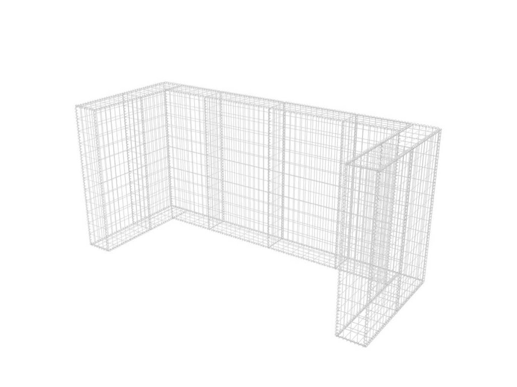 Tato stabilní a odolná gabionová zástěna k popelnicím je vyrobená z nerezavějící a vůči povětrnostním podmínkám odolné galvanizované oceli. Kovová mřížka je zhotovena svářením každého zkřížení svislých a horizontálních drátů. Drát, použitý pro její výrobu, má průměr 3,5 mm, výsledný produkt je tudíž velmi robustní a odolný. Výplň gabionu zůstane na svém místě, jelikož je možné ji dobře zajistit svrchním a spodním víkem.