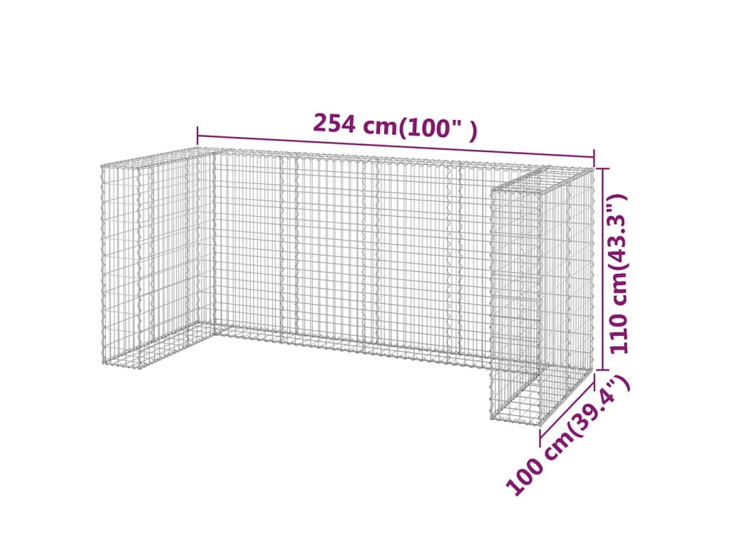 Gabionová zástěna pro popelnice pozinkovaná ocel 254x100x110 cm