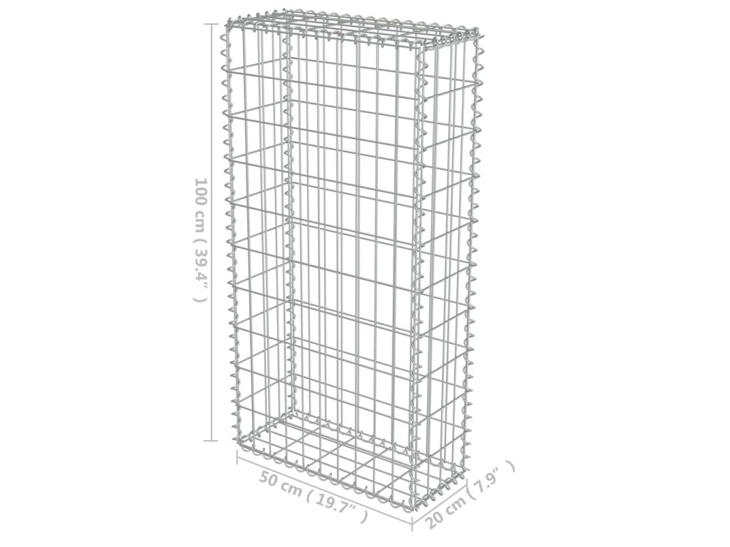 Gabionová zeď s kryty z pozinkované oceli 50 x 20 x 100 cm