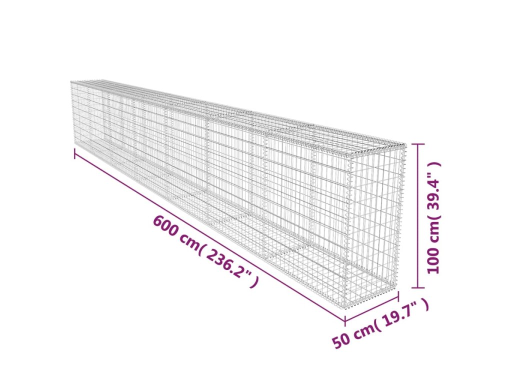 Gabionová zeď s víkem pozinkovaná ocel 600 x 50 x 100 cm