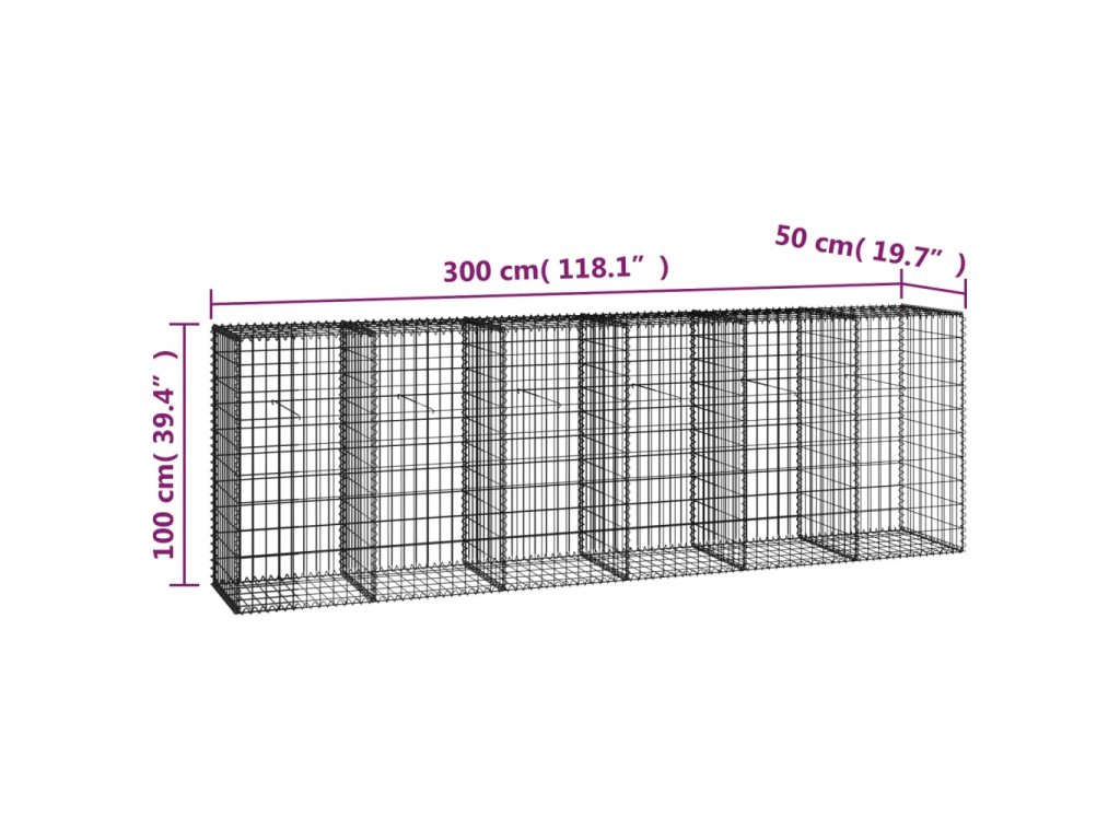 Gabionová zeď s víky z pozinkované oceli 300 x 50 x 100 cm