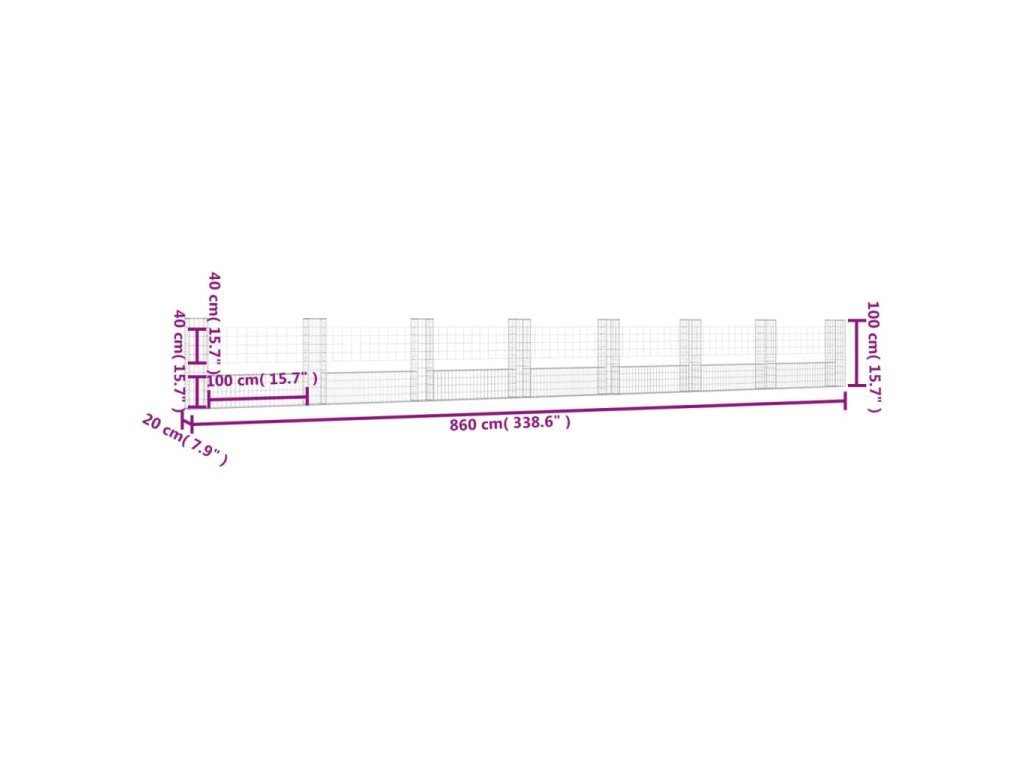 Gabion se sloupky, vyrobený z nerezavějícího železa odolného vůči povětrnostním vlivům, je velmi stabilní a odolný. Síťová mřížka je tvořena vodorovnými a svislými dráty, které jsou ve všech spojích svařené. Díky drátu o průměru 3,5 mm je gabion velmi robustní. Gabionová stěna je určená k vyplnění kameny nebo kamennou drtí pro rychlou výstavbu. Tento gabion je ideální pro zahradní projekty a ve vašem venkovním obytném prostoru nepochybně upoutá pozornost.
