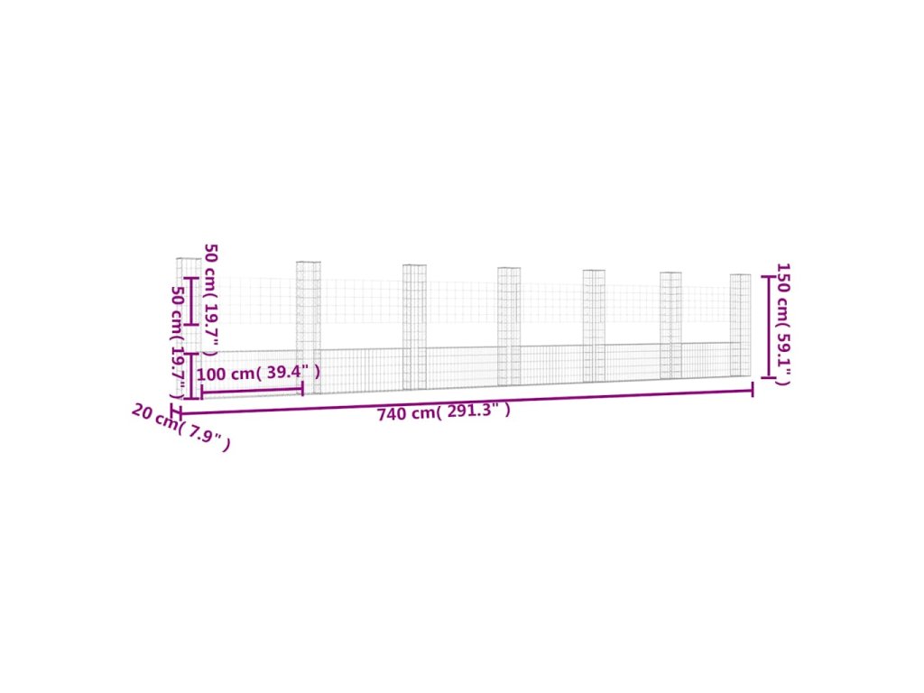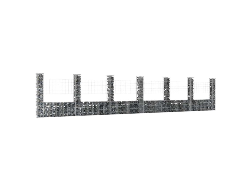 Gabionový koš ve tvaru U se 7 sloupky železo 740 x 20 x 150 cm