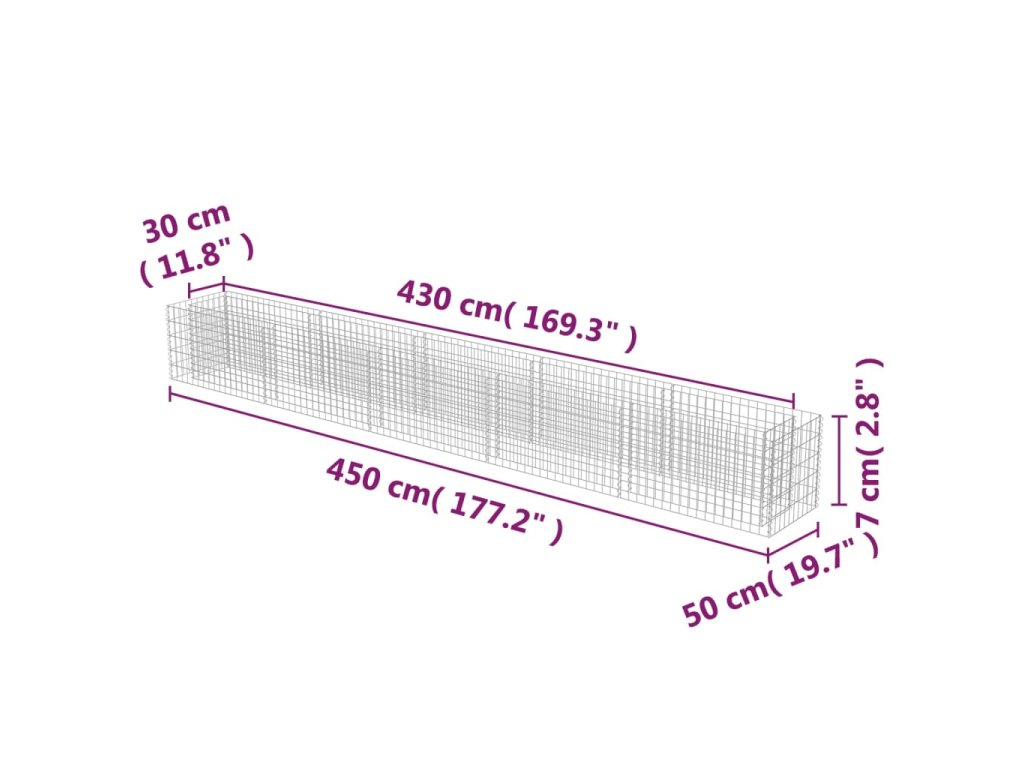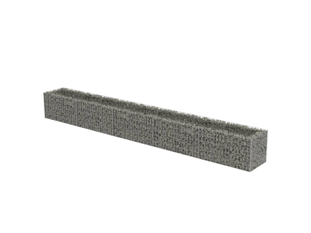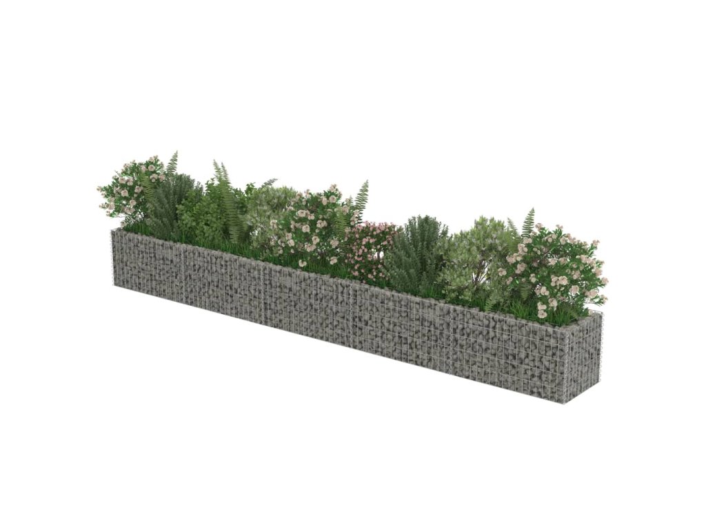 Robustní gabion je určen k tomu, aby byl naplněn kameny nebo štěrkem. Je vyrobený z nerezavějící pozinkované oceli, která nepodléhá povětrnostním vlivům, takže vysoký záhon je velmi stabilní a odolný. Síťová mřížka je tvořená svislými a vodorovnými dráty, které jsou ve všech spojích svařené, aby se tak zajistila mimořádná pevnost.
