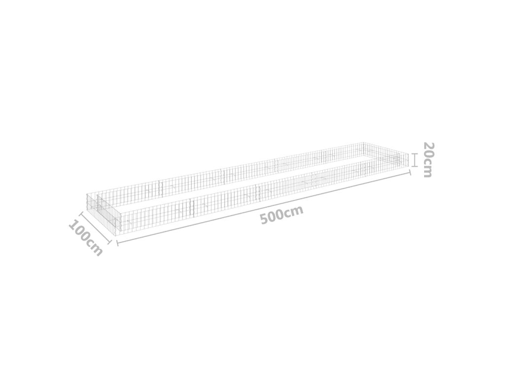 Gabionový vyvýšený záhon pozinkovaná ocel 500 x 100 x 20 cm