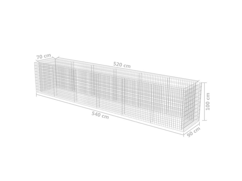 Gabionový vyvýšený záhon pozinkovaná ocel 540 x 90 x 100 cm
