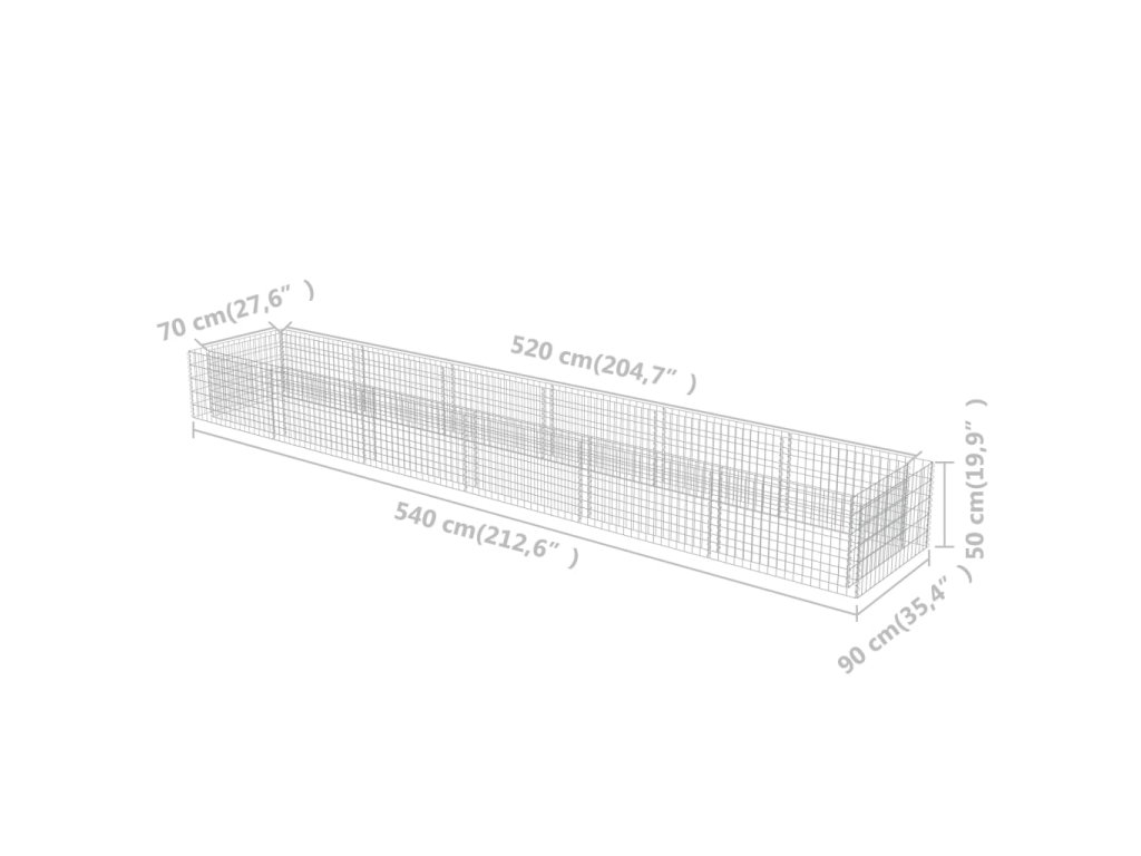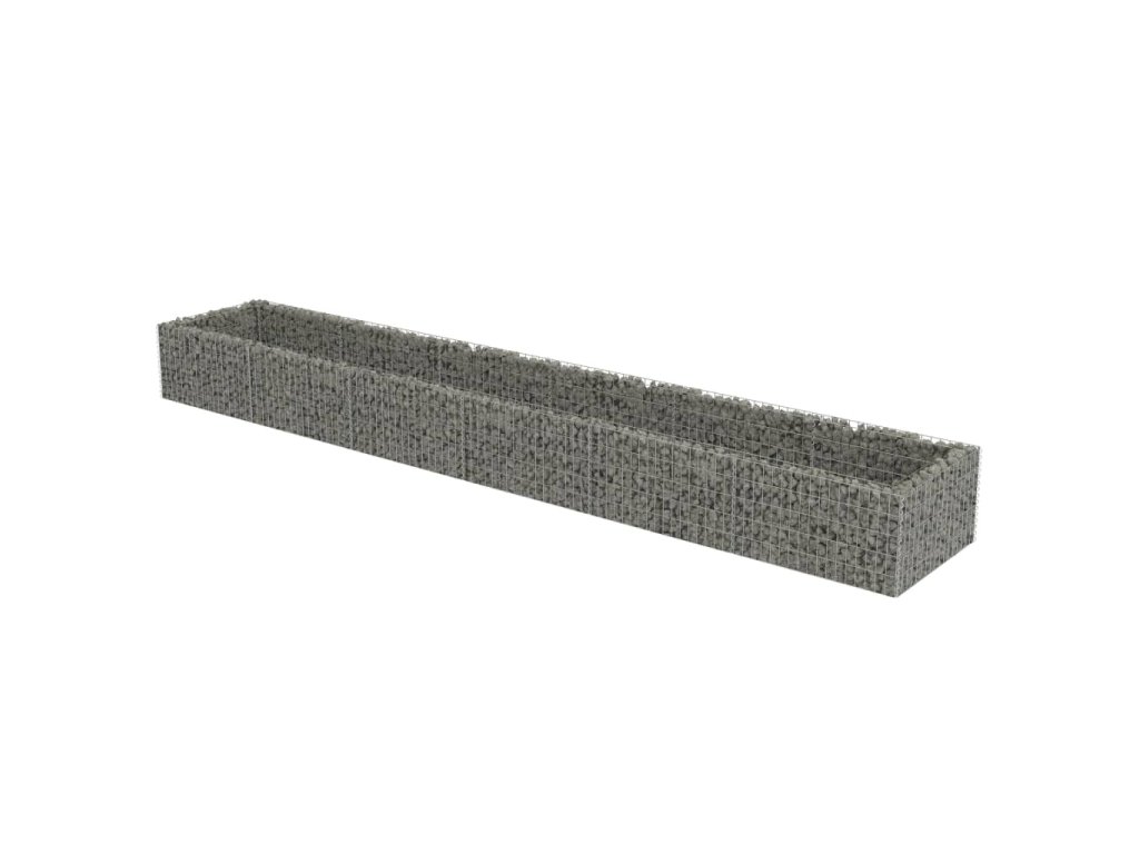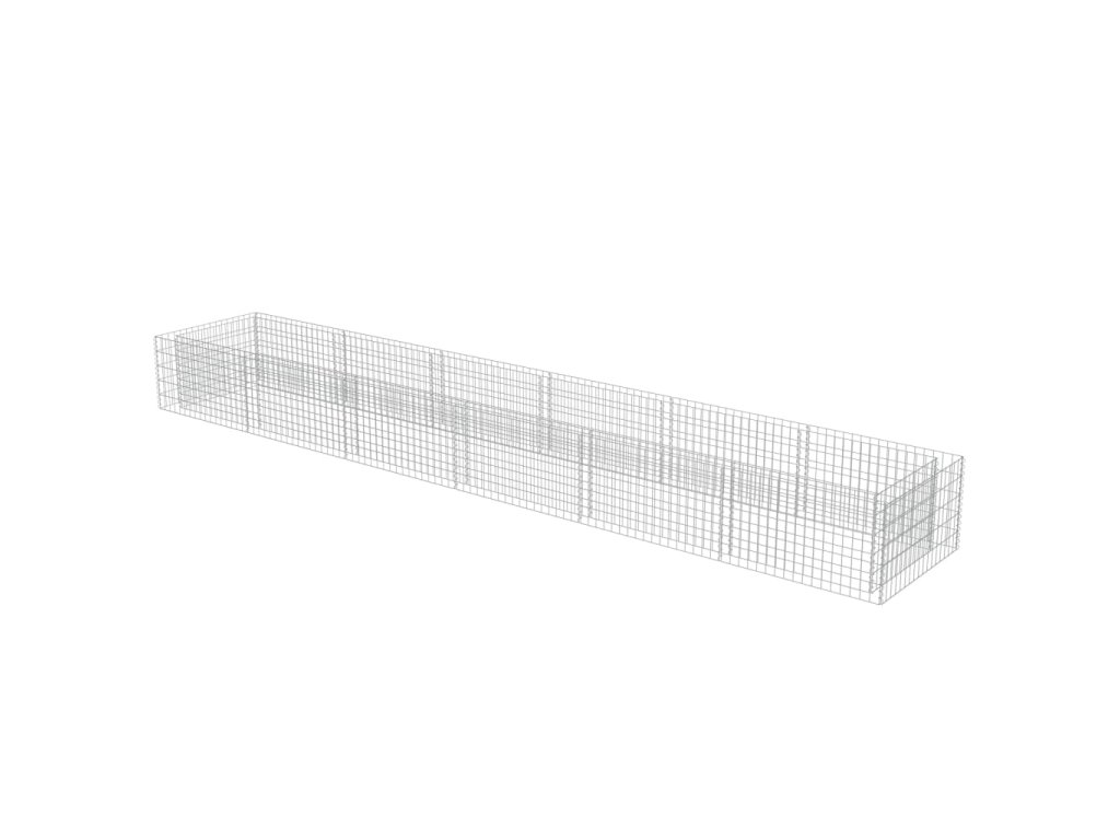 Robustní gabion je určen k tomu, aby byl naplněn kameny nebo štěrkem. Je vyrobený z nerezavějící pozinkované oceli, která nepodléhá povětrnostním vlivům, takže vysoký záhon je velmi stabilní a odolný. Síťová mřížka je tvořená svislými a vodorovnými dráty, které jsou ve všech spojích svařené, aby se tak zajistila mimořádná pevnost.