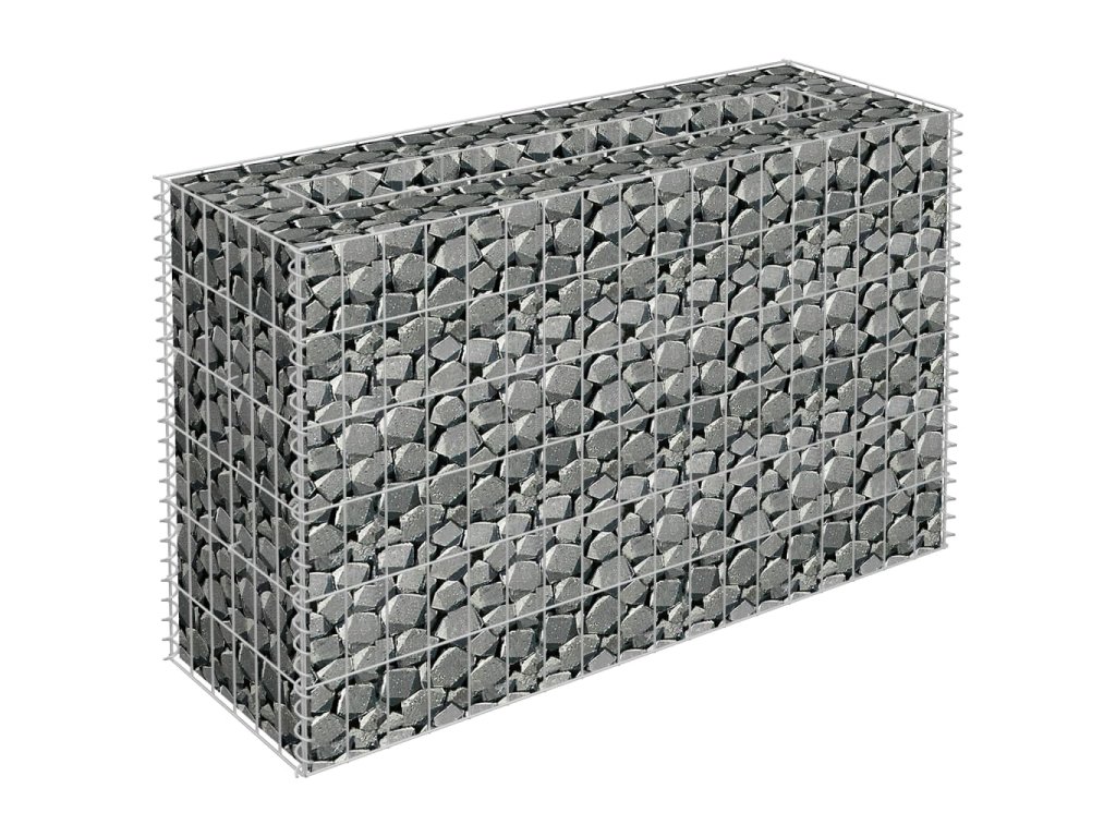 Robustní gabion je designovaný tak, aby ho bylo možné naplnit kameny nebo štěrkem. Gabion je vyrobený z nerezavějící pozinkované oceli, která nepodléhá povětrnostním vlivům, a proto je velmi stabilní a odolný. Síťová mřížka je tvořená svislými a vodorovnými dráty, které jsou ve všech spojích svařené, aby se tak zajistila mimořádná pevnost.