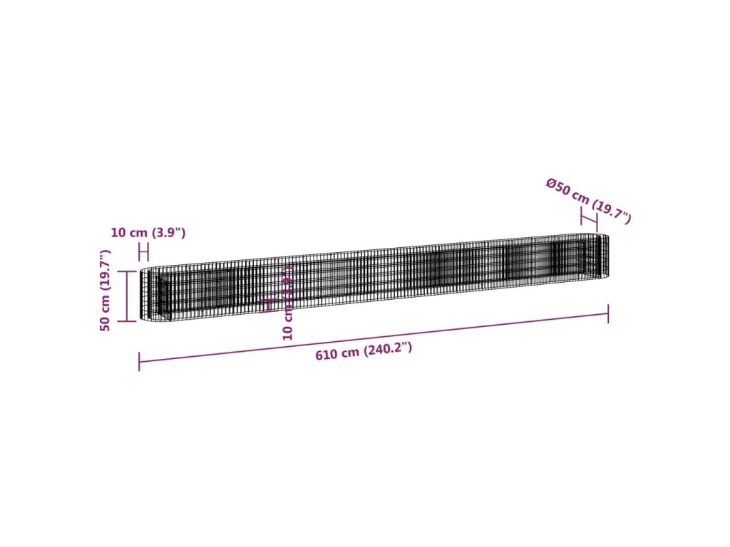 Gabionový vyvýšený záhon pozinkované železo 610 x 50 x 50 cm