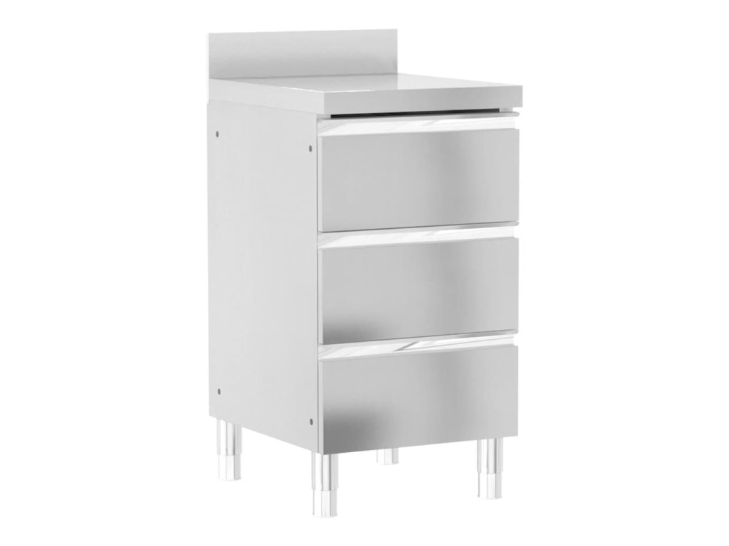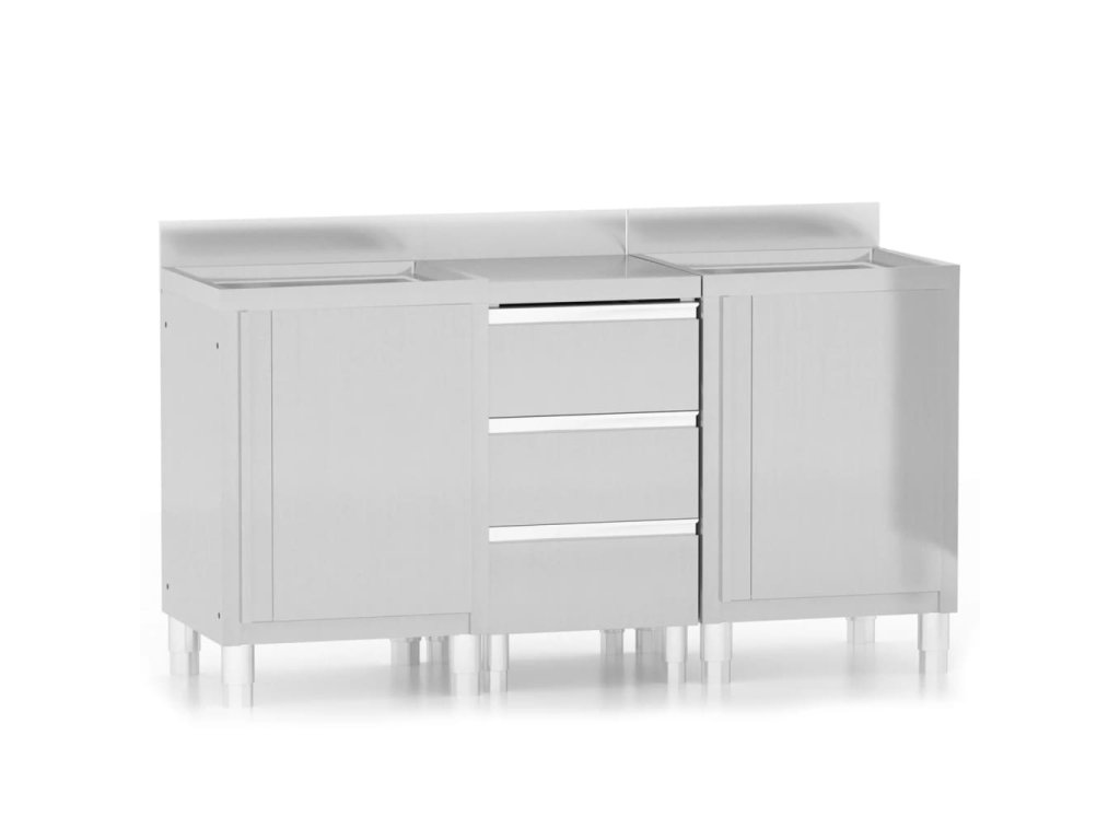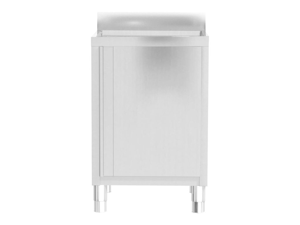 Tato úložní skříňka je vyrobená z kvalitní nerezové oceli a je robustní, antikorozní a snadno se čistí. Skříňka poskytuje dostatek úložného prostoru pro úklidové vybavení a příslušenství. Nastavitelné nožičky umožňují vyrovnat skříňku i na nerovné ploše. Součástí skříňky je 10 cm vysoký zadní lem a otvor na vodní trubku.