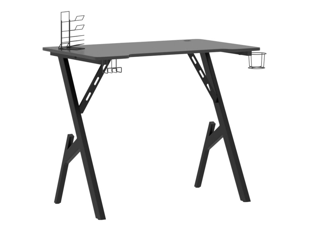 Efektivní ergonomický design nabízí perfektní herní pozici, takže váš výkon bude kvalitnější a zároveň vydržíte hrát déle! Tento počítačový stůl obsahuje držák na sluchátka a na ovladač, budete mít tedy vše pěkně po ruce. Na pravé straně desky máte k dispozici i držák na nápoje. Stůl nabízí dostatek prostoru pro vaše herní monitory, PC, klávesnice a další herní vybavení. Železné nohy ve tvaru Y zajišťují stabilitu a uspokojí požadavky každého hráče.