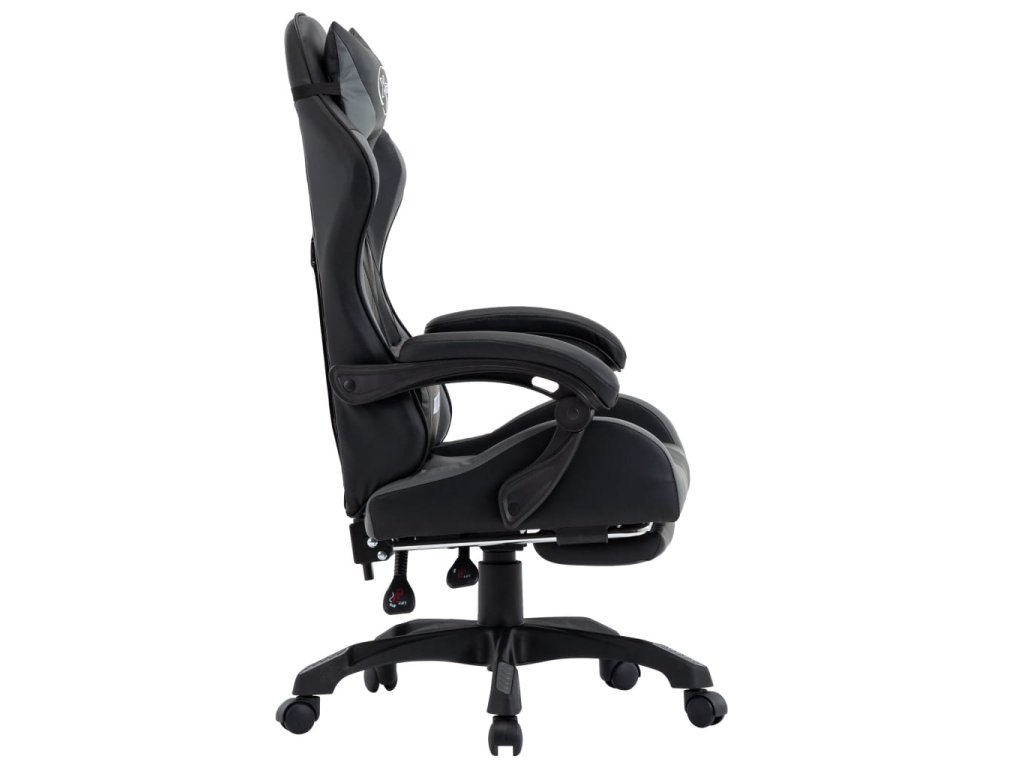 Polohovací židle má sklopnou opěrku nohou, kterou lze sklopit pod sedák, kdykoli ji nepoužíváte. Součástí židle je také hustě polstrovaná opěrka hlavy a polštářek pod bedra, která vám nabídnou extra pohodlí pro každý náročný pracovní den. Kancelářská židle je vybavená plynovým zvedacím mechanismem, takže je výškově nastavitelná. Úhel sklopení je také nastavitelný, takže pokud máte pocit, že byste si chtěli zdřímnout, umístěte opěradlo do zcela sklopené polohy. Podvozek s pojezdovými kolečky s 360° otáčením usnadňuje pohyb po okolí.