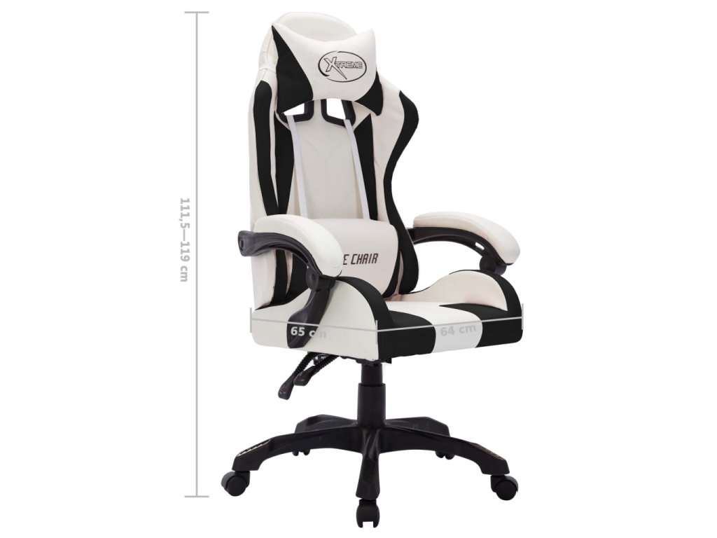 Herní židle je čalouněná umělou kůží, která se snadno čistí. Součástí je také hustě polstrovaná opěrka hlavy a polštářek pod bedra, jež vám během vašeho náročného pracovního dne zajistí mimořádné pohodlí. Kancelářská židle je vybavená mechanismem s plynovým pístem, takže lze upravovat její výšku. Stejně tak si můžete nastavit i úhel sklonu, pokud vás tedy přepadne chuť si na chvíli zdřímnout, stačí sklopit opěradlo do nejnižší polohy. Židle se navíc otáčí o 360° a má 5 pojezdových koleček, což usnadňuje její pohyb. Okraj opěradel je opatřen LED světly, která vám navodí lepší herní atmosféru. Pomocí dálkového ovladače můžete snadno měnit barvu a způsob blikání světel.