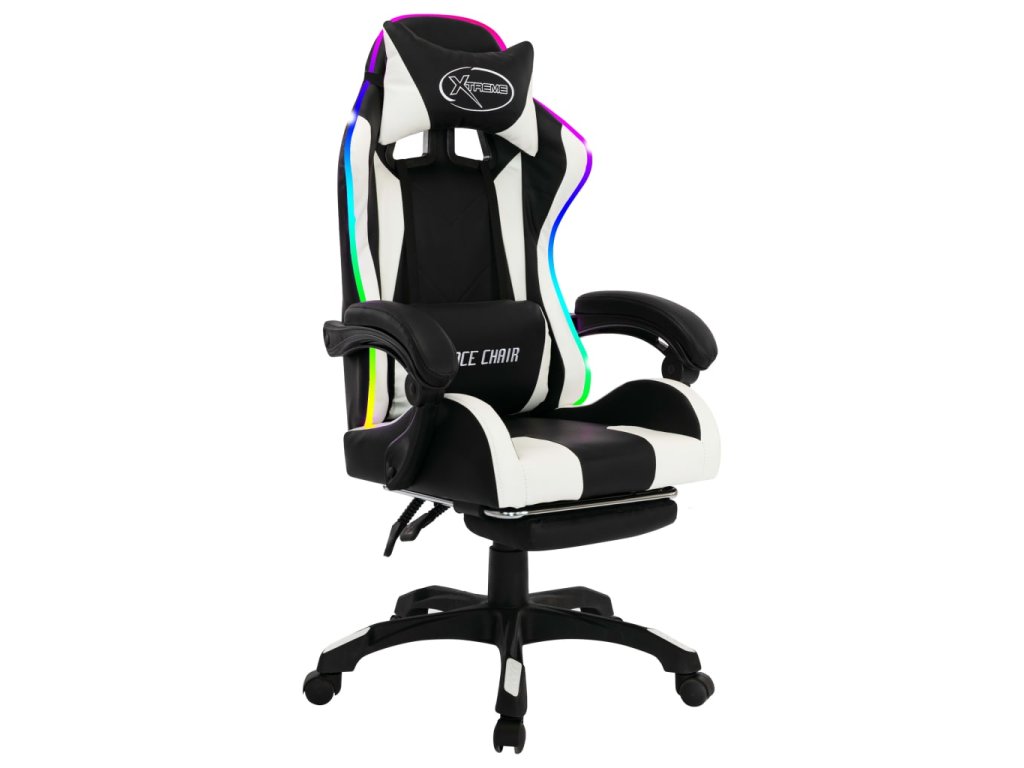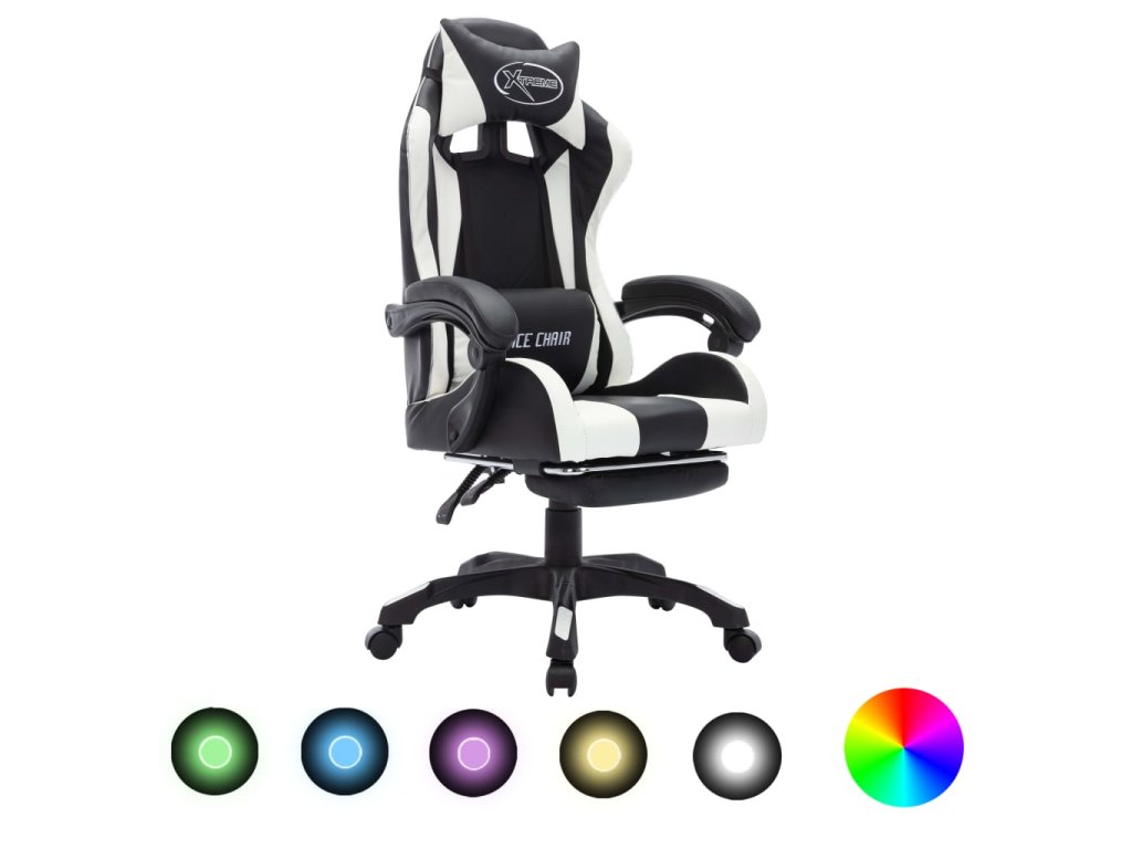 Herní židle s RGB LED podsvícením bíločerná umělá kůže