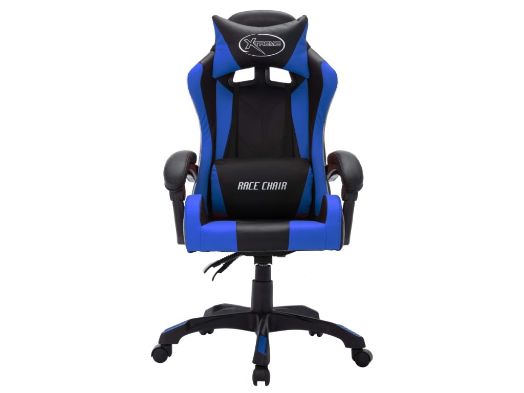 Herní židle s RGB LED podsvícením modro-černá faux kůže