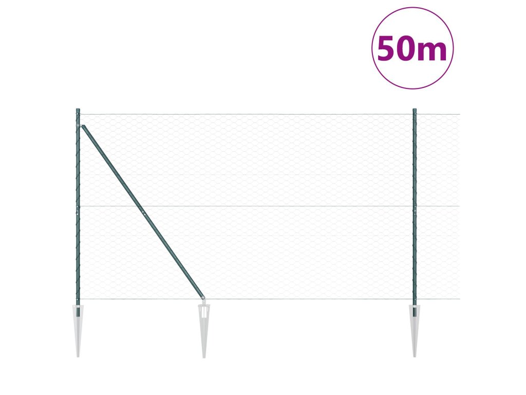 Plotový sloupek. Zelená 50 x 1,6 m (50 mm síť) Ocel a PVC