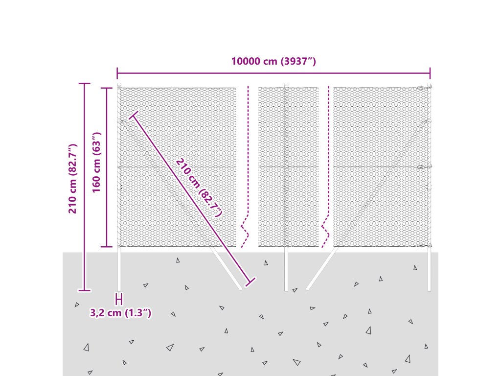 - Celkové rozměry: 10000 x 3,2 x 160 cm (D x Š x V)