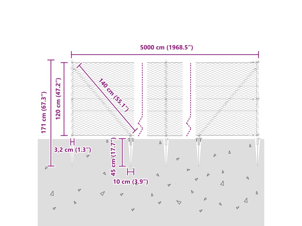 - Celkové rozměry: 5000 x 3.2 x 120 cm (D x Š x V)