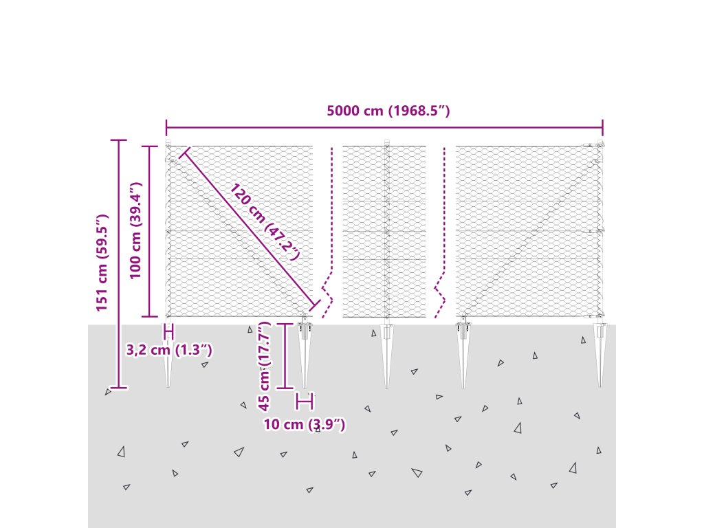 - Celkové rozměry: 5000 x 3.2 x 100 cm (D x Š x V)