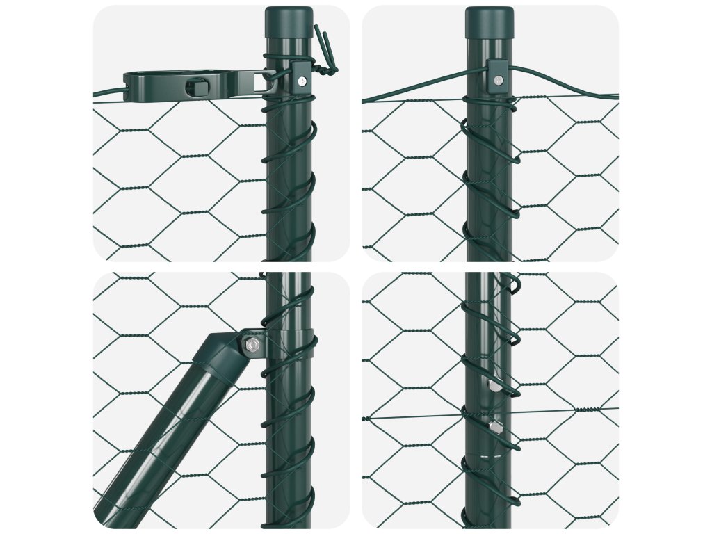 Odolné materiály: Vyrobený z PVC potažené oceli, panely odolávají počasí a korozi, takže vypadají hezky a silně i při dešti nebo slunci. Perfektní pro venkovní použití, slibují spolehlivý výkon sezónu za sezónou. Snadné zabezpečení: Každý panel do sebe přesně zapadá a vytváří bezproblémovou bariéru, která drží oblasti oddělené a bezpečné. Toto uspořádání udržuje tvé mazlíčky uvnitř a zároveň to vypadá skvěle. Jednoduchá montáž: Plot je navržen pro snadnou instalaci, postupuj podle pokynů výrobce a postavíš ho bez problémů. Můžeš snadno měnit uspořádání, když chceš osvěžit vzhled tvého venkovního prostoru. Praktické využití: Určený speciálně pro venkovní použití, tenhle plot je ideální k oddělování prostor pro zahrady, mazlíčky nebo soukromí a přizpůsobí se různým tvarům a stylům zahrady. Údržba bez starostí: Díky svým UV a korozivzdorným materiálům se o něj můžeš postarat s minimálními náklady, takže si užiješ pěknou a bezpečnou hranici bez námahy.- Barva: Zelená