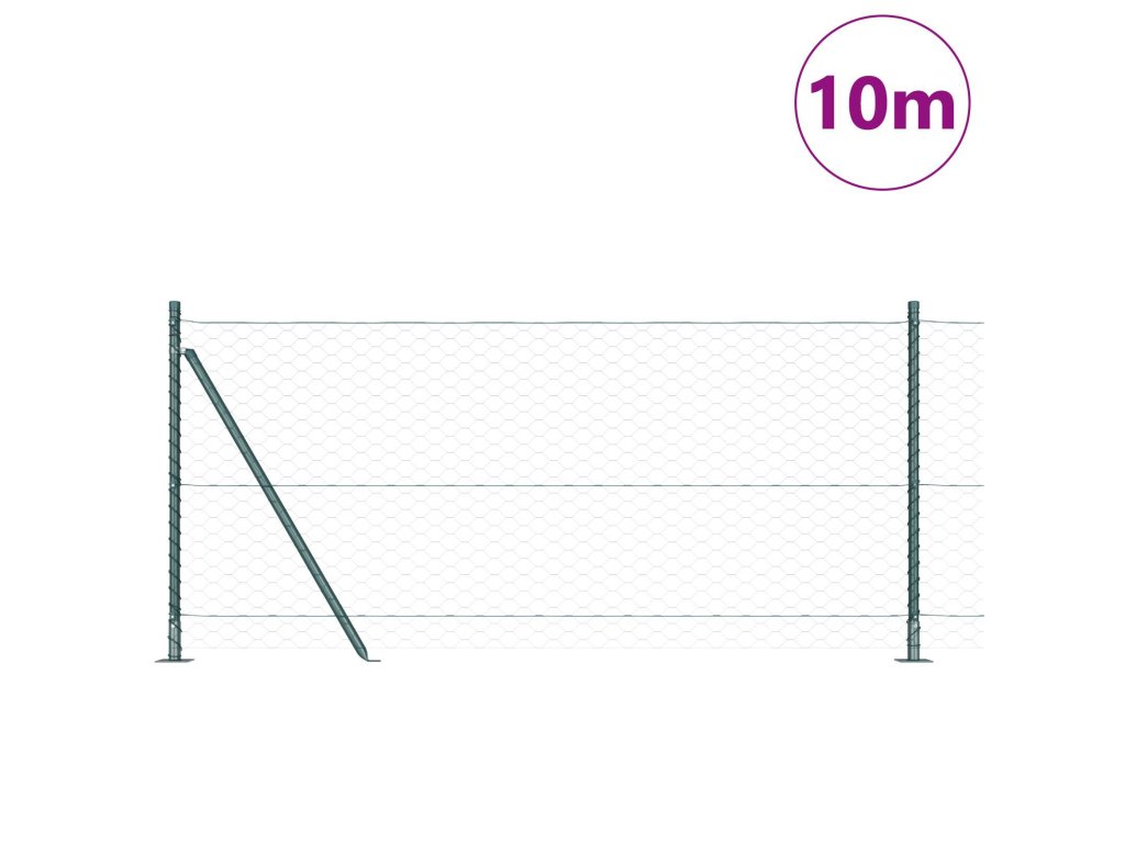 Plotový sloupek. Zelená 10 x 1 m (50 mm síť) Ocel a PVC