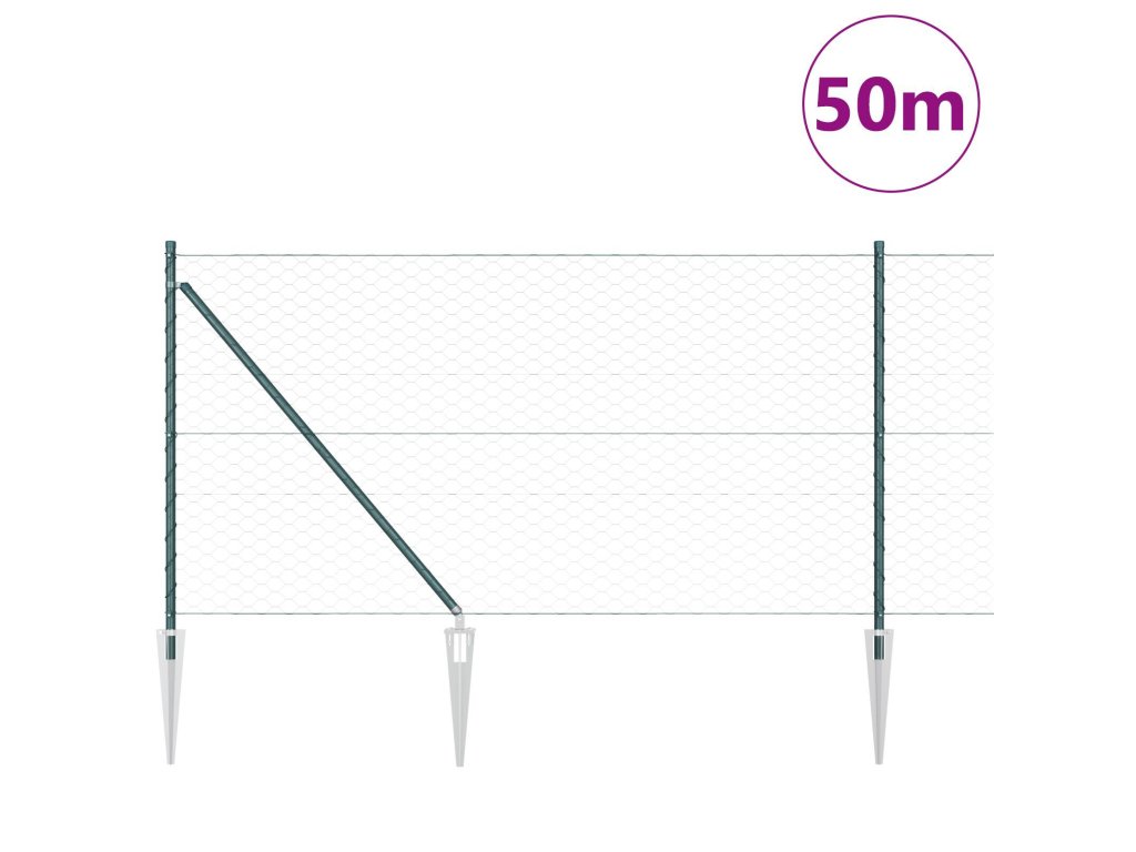 Plotový sloupek. Zelená 50 x 1 m (50 mm síť) Ocel a PVC
