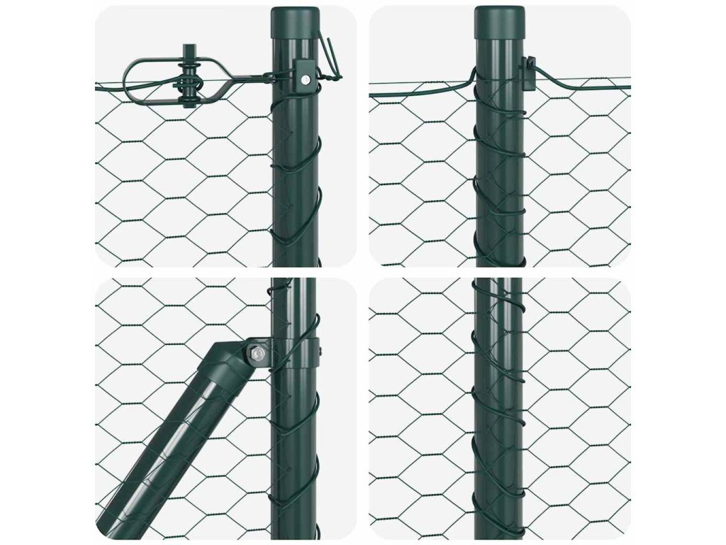 Odolné materiály: Vyrobený z PVC potažené oceli, panely odolávají počasí a korozi, takže vypadají hezky a silně i při dešti nebo slunci. Perfektní pro venkovní použití, slibují spolehlivý výkon sezónu za sezónou. Snadné zabezpečení: Každý panel do sebe přesně zapadá a vytváří bezproblémovou bariéru, která drží oblasti oddělené a bezpečné. Toto uspořádání udržuje tvé mazlíčky uvnitř a zároveň to vypadá skvěle. Jednoduchá montáž: Plot je navržen pro snadnou instalaci, postupuj podle pokynů výrobce a postavíš ho bez problémů. Můžeš snadno měnit uspořádání, když chceš osvěžit vzhled tvého venkovního prostoru. Praktické využití: Určený speciálně pro venkovní použití, tenhle plot je ideální k oddělování prostor pro zahrady, mazlíčky nebo soukromí a přizpůsobí se různým tvarům a stylům zahrady. Údržba bez starostí: Díky svým UV a korozivzdorným materiálům se o něj můžeš postarat s minimálními náklady, takže si užiješ pěknou a bezpečnou hranici bez námahy.- Barva: Zelená