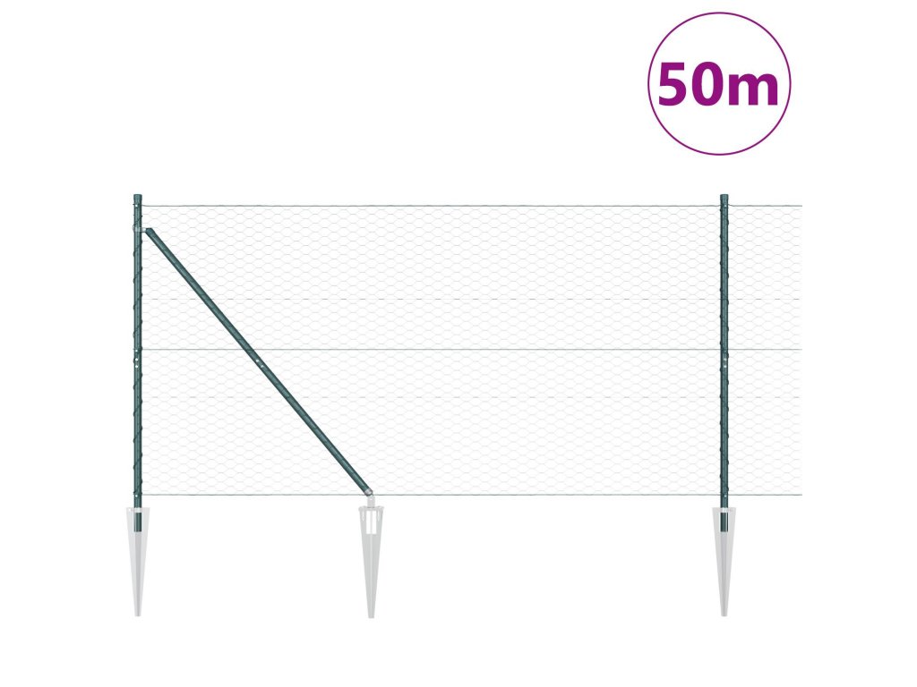 Plotový sloupek. Zelená 50 x 1,2 m (36 mm síť) Ocel a PVC