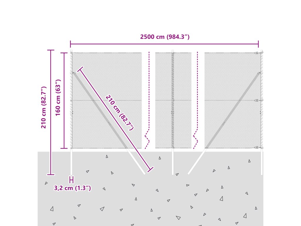 - Celkové rozměry: 2500 x 3.2 x 160 cm (D x Š x V)