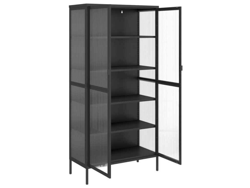 Highboard černý 85 x 40 x 180 cm sklo a ocel