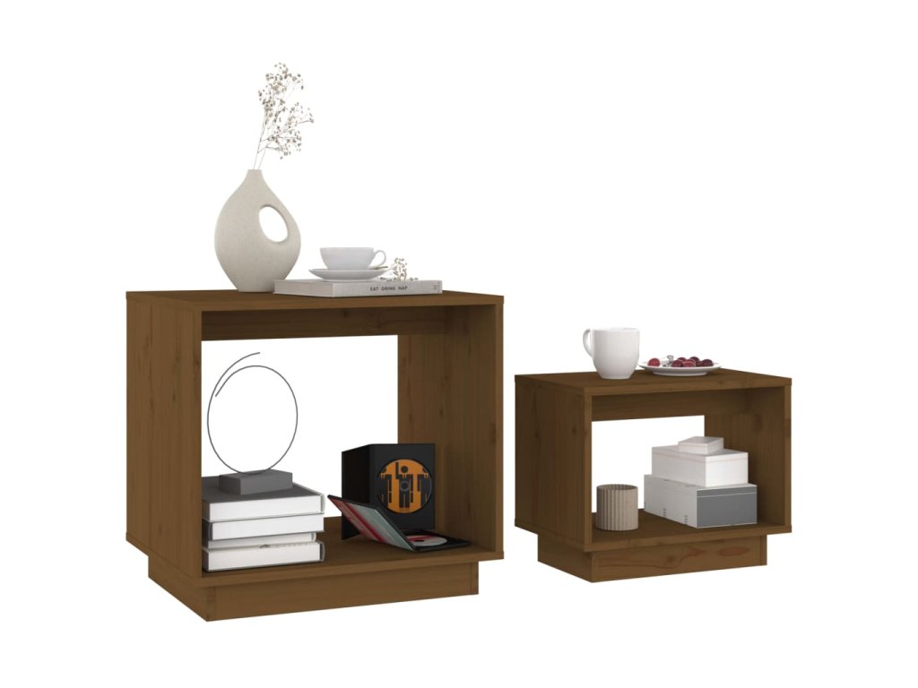 Hnízdové konferenční stolky 2 ks medově hnědé masivní borovice