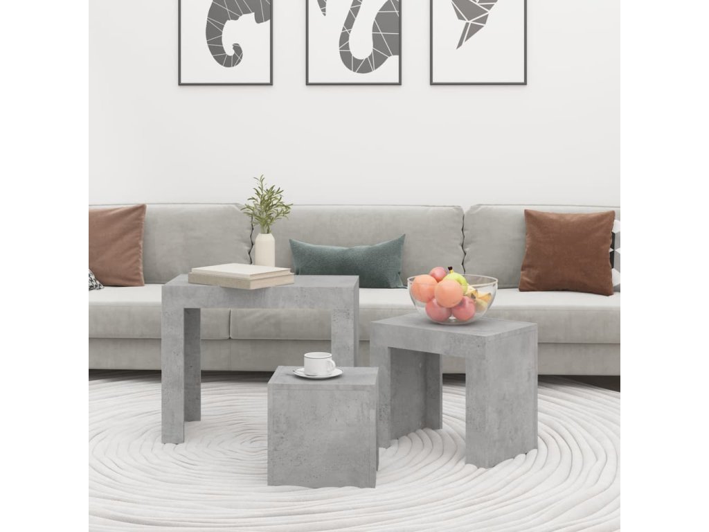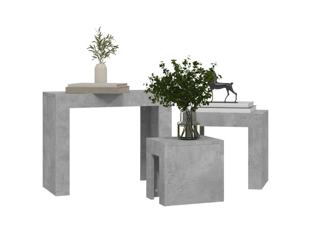 Hnízdové konferenční stolky 3 ks betonově šedé kompozitní dřevo